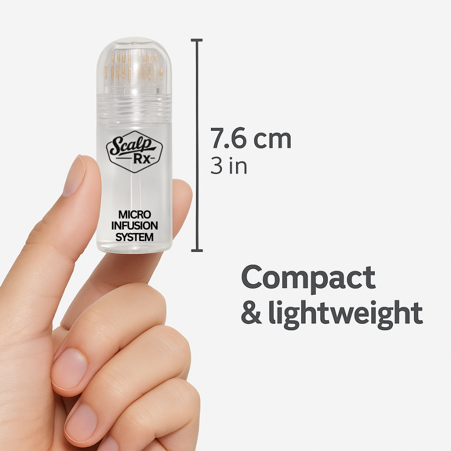 Absolutely. ScalpRx™ uses ultra-fine, medical-grade micro needles engineered for gentle, painless delivery. They don’t puncture deeply — they open micro-channels that help nutrients absorb more effectively. It’s a safe, dermatologist-inspired technique used in top hair clinics, now made simple at home.