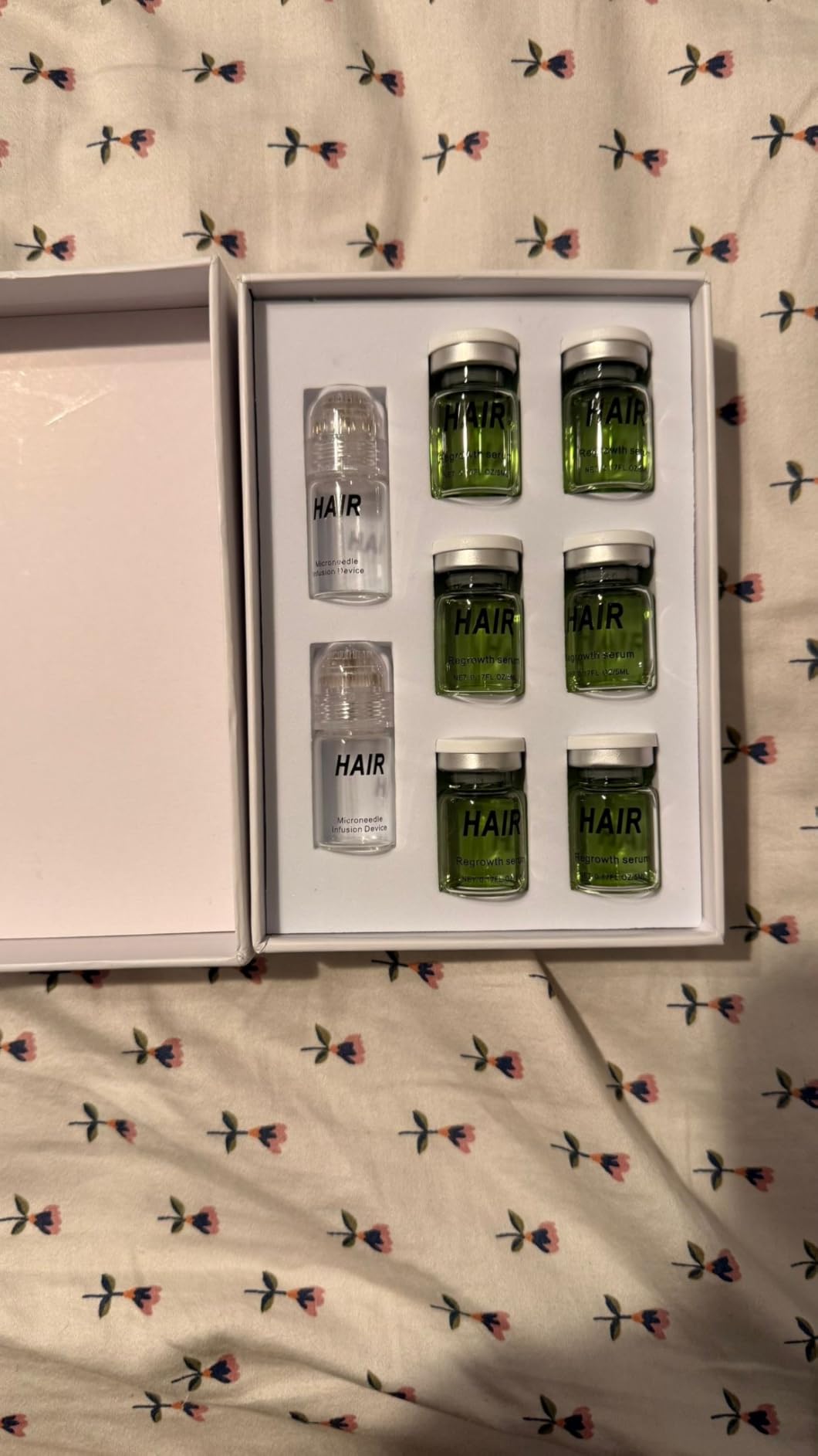 I’ve been using this hair regrowth serum for almost a week. No major changes yet, but I know these things take time, so I’m staying consistent and hopeful. The texture is lightweight and absorbs easily without leaving any greasy residue, which makes it easy to apply daily.The scent is fresh and herbal..thanks to ingredients like peppermint and ginger root, and not overpowering at all. It actually feels soothing on the scalp. Looking forward to seeing how it works with continued use!